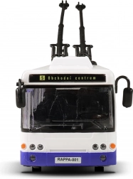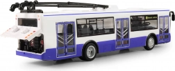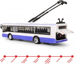 Rýchlo nastúpiť, zavrieť dvere a ideme! Tento realistický trolejbus s dĺžkou 28 cm v mierke 1:43 oznamuje zastávky v českom jazyku a jazdí na zotrvačník. Otváracie dvere možno ovládať manuálne, automatické zatváranie tlačidlom na streche sprevádzajú blikajúce predné svetlá a české hlásenie. Batérie sú súčasťou balenia – skvelý darček pre malých vodičov aj fanúšikov ekologickej dopravy.