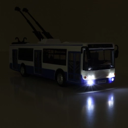 Objavte zábavu z mestskej dopravy s modrým trolejbusom, ktorý hovorí po česky a pri otvorení dverí prehráva hlásenia zastávok. Realistické detaily v mierke 1:43 a dĺžka 28 cm z neho robia parádny model aj odolnú hračku na každodenné hranie.