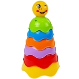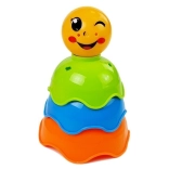 Hrácia pyramída v dúhových farbách zo skladacích pohárikov podporuje rozvoj dieťaťa už od prvých mesiacov. Poháriky z kvalitného, bezpečného plastu majú hladké, zaoblené hrany a navrchu je najmenší pohárik s veselou tváričkou. Hračka rozvíja jemnú motoriku, koordináciu oko–ruka, rozlišovanie farieb a tvarov aj logické myslenie.
