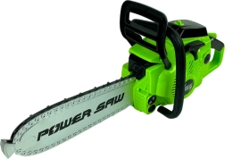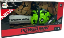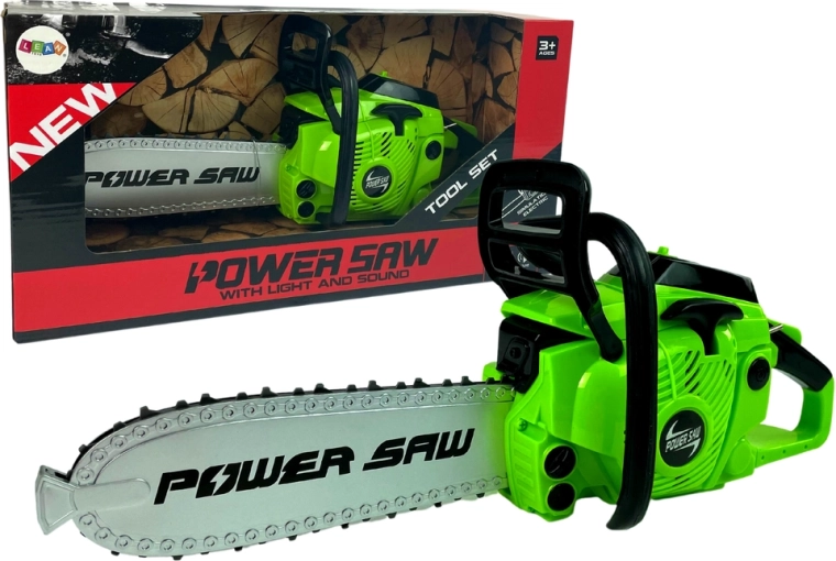 Táto detská motorová píla je navrhnutá tak, aby bola bezpečná a zábavná pre deti. Píla sa aktivuje stlačením tlačidla, ktoré simuluje pohyb bezpečného plastového reťazu, čo umožňuje deťom zažiť vzrušenie z práce s nástrojom bez rizík skutočného náradia.