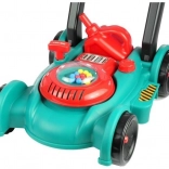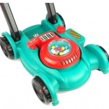 Hračka kosačka s otáčacou rukoväťou a farebnými guličkami zabavne simuluje skutočnú kosačku.