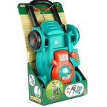 Táto súprava zahrňuje tiež ochrannú prilbu pre bezpečnosť počas simulovaných vonkajších činností. Kosačka a jej kolieska sú navrhnuté pre použitie ako vonku, tak vnútri, čo umožňuje vašim malým záhradníkom sa hrať za každého počasia.