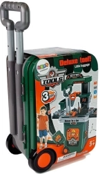 Ak vaše dieťa rado pomáha oteckovi s majstrovaním, táto prenosná súprava bude preň ideálna. Dielňa v kufríku je perfektná vec, ktorú si teraz môže vziať kamkoľvek so sebou. Výsuvná rukoväť a kolieska na zadnej strane mu umožnia ťahať ju so sebou. Po otvorení kufríka sú vo vnútri všetky dieliky, z ktorých si môže vytvoriť vlastnú dielňu. Nezaberie pritom veľa miesta. Najväčšou výhodou súpravy je veľké množstvo dielov, takže vaše dieťa bude môcť opravovať veľa hračiek.