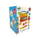 Vedierko s vekom slúži ako sortér tvarov so zvieracími motívmi, čo umožňuje interaktívnu hru a rozpoznávanie tvarov a farieb.