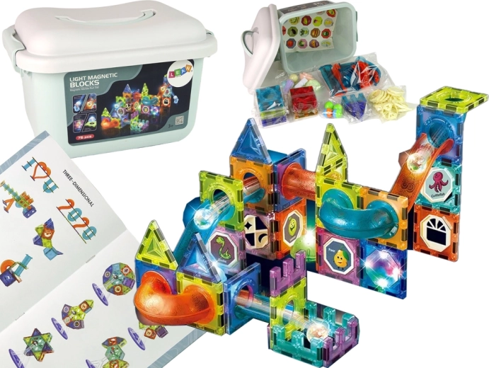 Šmýkačka pre guľôčky Osvetlená dráha Magnetické bloky 75 prvkov