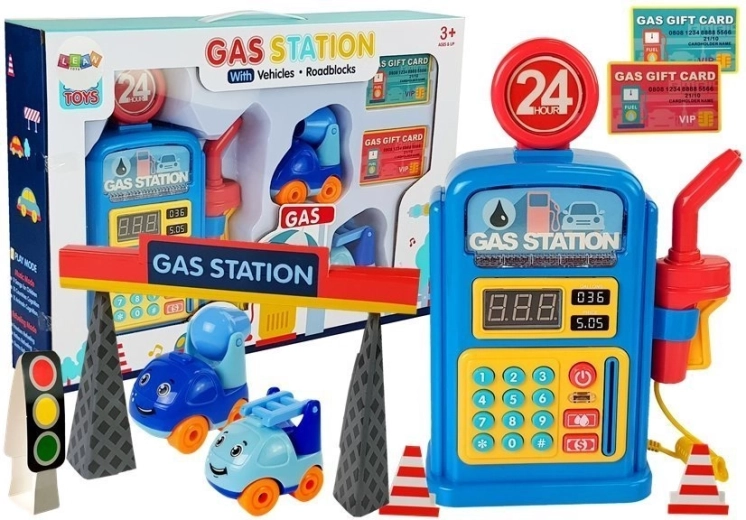 Zábavná detská čerpacia stanica v modro-žltom prevedení prináša realistickú hru na tankovanie s autíčkami. Ponúka svetelné a zvukové efekty, anglické hlasové pokyny, slot na platobné karty a počítadlo litrov po stlačení rukoväte. Súčasťou sú 2 usmievavé autíčka (domiešavač betónu a hasič s rebríkom), dopravné značky, kužele a ďalšie doplnky pre nekonečnú kreatívnu hru.