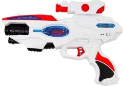Tento set kozmickej výbavy je skvelým darčekom pre malých fanúšikov sci‑fi. Farebná kombinácia tlmených tónov s červenými a koralovými akcentmi zaujme na prvý pohľad. Pištoľ po stlačení spúšte svieti a vydáva zvuky, takže vynikne najmä v tme. Maska v bielo‑sivom prevedení má obdĺžnikový priezor pre oči, otvory pri ústach a pružnú gumičku pre pohodlné a isté nosenie.