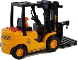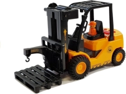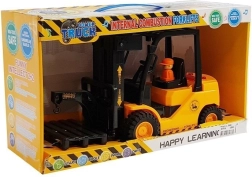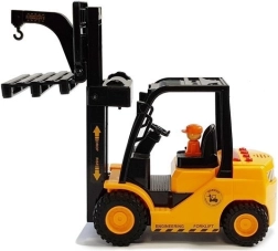 Realistický detský vysokozdvižný vozík v oranžovej farbe ponúka pohyblivé vidlice, praktický háčik na náklad a interaktívne svetelné a zvukové efekty. Vďaka gumovým kolesám je jazda plynulá a stabilná, čo podporuje rozvoj motoriky a kreatívnu hru.
