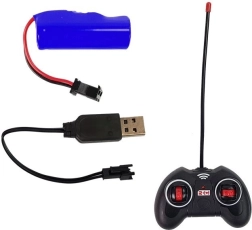 Ovládač na frekvencii 27 MHz má dva joysticky na intuitívne riadenie: vpred/vzad a vpravo/vľavo. Otvárateľné zadné vrátka prívesu umožnia prevážať malé hračky či náklad. V balení nájdete všetko potrebné na jazdu – nabíjateľnú batériu 3,7 V 500 mAh a USB kábel. Stačí doplniť 2× AA batérie do vysielača.