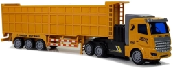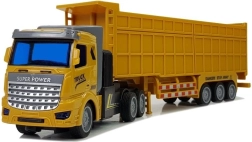 Tento detailne spracovaný návesový kamión na diaľkové ovládanie ponúka realistickú jazdu, ktorú deti milujú. Behúňové pneumatiky, žltá kabína s prívesom a výrazné potlače podporujú fantáziu a role-play. Pri jazde vpred sa v kabíne rozsvietia modré LED diódy, ktoré dodajú hre efekt.