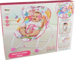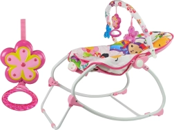 Pohodlná detská hojdačka a sedačka 2 v 1 v nežnom ružovom dizajne s kvetinovým motívom poteší bábätká od prvých dní života. Ponúka ukľudňujúce vibrácie, prehrávanie melódií po zatiahnutí za kvietok a odnímateľný oblúk s hračkami na rozvoj zmyslov. Má 2 polohy sklonu, hlboké a pohodlné sedadlo, 3-bodový bezpečnostný pás a poťah prateľný v práčke. Nosnosť až 18 kg, rastie s dieťaťom až do cca 3 rokov.