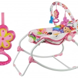 Univerzálne ležadlo a hojdačka 2 v 1 poskytne bábätku bezpečné miesto na odpočinok aj hru. Jemné hojdanie pripomína bábätku prirodzený pohyb a pomáha k upokojeniu, zatiaľ čo vibrácie uľahčia zaspávanie. Odnímateľný kruhový oblúk so závesnými hračkami (kvetinka s melódiou a bočné motýliky) stimuluje zrak aj sluch a podporuje koordináciu rúčok.