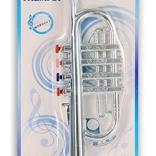 Kovová lesklá trúbka so 4 klapkami, ideálna pre začiatočníkov i pokročilých hráčov. Vyrobené v Taliansku z kvalitného materiálu.