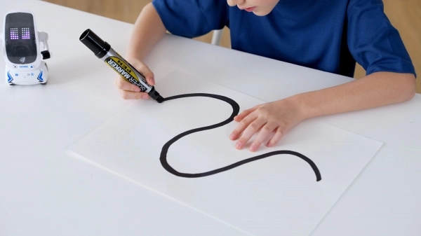 Robot spoľahlivo sleduje čiernu čiaru – stačí nakresliť odvážnu dráhu a sledovať, ako ňou prechádza.