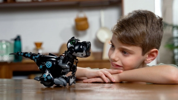 Dinosaurus reaguje na pohyby rúk a jemné dotyky. Deti tak môžu vyvolať zmenu smeru, akcie či zvukové a svetelné efekty bez použitia ovládača.