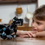 Vďaka kompaktnej veľkosti cca 34 cm sa ľahko zmestí na stôl či do poličky, napriek tomu ponúkne prekvapivo bohaté funkcie – od pohybu po zemi až po chňapajúcu tlamu a svetelné oči. Súčasťou balenia je tiež loptička, ktorá rozširuje herné možnosti a podporuje aktívnu hru.