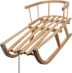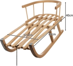 Drevené sane s opierkou sú vyrobené z tvrdého bukového dreva, čo zaručuje ich dlhú životnosť a odolnosť. Sane sú vybavené kovovými lyžami, ktoré umožňujú hladký sklz na všetkých snehových povrchoch. Vďaka svojmu dizajnu s opierkou poskytujú stabilitu a pohodlie aj pre malé deti a vďaka možnosti odmontovania opierky sú vhodné aj pre väčšie deti.