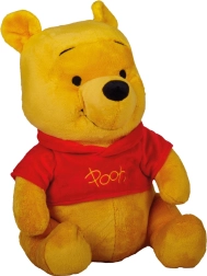Verne stvárnený Macko Pú s ikonickým červeným tričkom a nápisom „Pooh“ poteší malých aj veľkých fanúšikov.