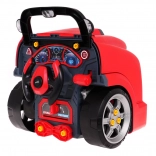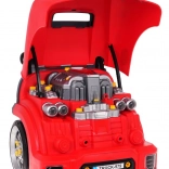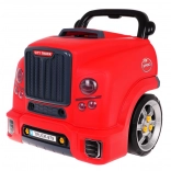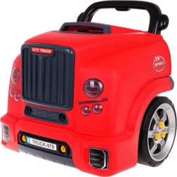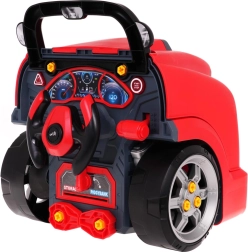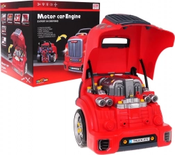 Táto realistická interaktívna sada premení deti na šikovných mechanikov. Predok nákladného vozidla s vyklápacou kapotou ukrýva veľký rozoberateľný motor, kde možno meniť sviečky aj kolesá. Na palubnej doske nechýba tlačidlo štart so zvukmi štartovania, volant s klaksónom, výstražný indikátor a radiaca páka. Praktická rukoväť uľahčí prenášanie, pod volantom je skrinka na náradie a skrutky.