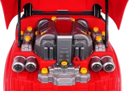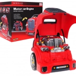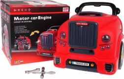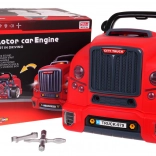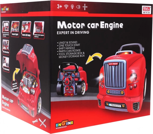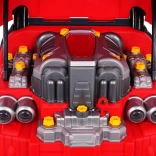 Pod kapotou čaká veľký motor, ktorý možno skrutkovať a rozoberať na časti – skvelé na tréning jemnej motoriky a logiky.