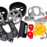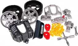Súčasťou balenia sú kolesá s puklicami, 31 skrutiek, náradie, dekoratívne samolepky a návod. Zábava so svetelnými efektmi reflektorov a motora aj zvukmi jazdy a cúvania udrží malých autíčkarov dlho v akcii.