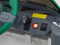 - Komfort a štýl: mäkké EVA kolesá, sedadlo z ekokože, podsvietený predný gril.