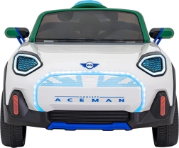 MINI Concept Aceman je prémiové detské autíčko s dôrazom na bezpečie, zábavu a dizajn. Výkonná konfigurácia pohonu (2x20 W predné + 2x35 W zadné) v kombinácii s batériou 12 V 9 Ah zaistí plynulý rozjazd, dve rýchlosti a jazdu vpred/vzad. Rodičovský dohľad je jednoduchý vďaka 2,4 GHz diaľkovému ovládaču s tromi rýchlosťami a bezpečnostným tlačidlom STOP.