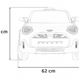 Vďaka mäkkým EVA kolesám (Ø 22 cm, šírka 8 cm) je jazda tichá a komfortná aj na horšom povrchu. Autíčko má otváracie dvere, podsvietený štart, predné aj zadné LED svetlá a podsvietenú masku. Pohodlné sedadlo z ekokože s reliéfom MINI a bezpečnostným pásom ponúka istotu aj štýl. Audio panel s MP3, Bluetooth, USB a AUX poteší malých vodičov obľúbenou hudbou.