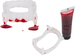 Premeňte sa na skutočného upíra behom pár sekúnd. Biele plastové tesáky s červenými akcentmi napodobňujú čerstvú krv a spoločne s tubou falošnej krvi vytvoria autentický hororový efekt pre maskérske aj kostýmové použitie. Hodí sa na Halloween, maškarný bál, tematické večierky aj filmové či foto projekty.