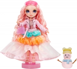 Zimná edícia RAINBOW HIGH prináša bábiku Bellu v nežných ružových tónoch a s hravými detailmi. Prekvapí vás magický sneh, ktorý po pridaní vody premení outfit na nadýchaný a odhalí nové farby. V balení nechýba stojan, hrebeň a zimné doplnky ani set na vlastného snehuliaka. Bábika je plne pohyblivá (11") na kreatívne pózy a nekonečné príbehy.