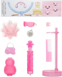 Ružovo ladený zimný štýl dopĺňajú okuliare, kabelka, kefa aj stojan na vystavenie. Skvelé na styling, hranie aj fotenie.
