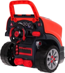 Toto interaktívne nákladné auto premení detskú izbu na skutočný servis. Pod kapotou sa ukrýva veľký rozoberateľný motor, ktorý možno pomocou skrutiek a náradia ľahko skladať a rozkladať, meniť sviečky aj kolesá. Na palubnej doske nájdete tlačidlo štart so zvukmi štartovania, volant s klaksónom a výstražnú signalizáciu. Pod volantom je praktický úložný priestor na náradie.