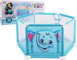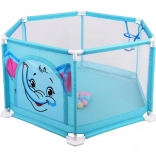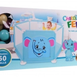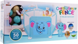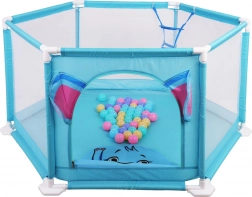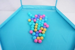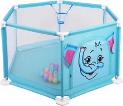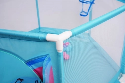 Súčasťou balenia je 50 farebných mičiek a vo vnútri je tiež kôš na hádzanie, ktorý podporuje motoriku aj zábavnú aktivitu. Ohrádnik je ľahko prenosný, vhodný do interiéru aj exteriéru a jeho povrchy sa ľahko udržiavajú.