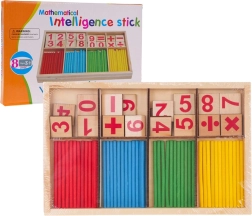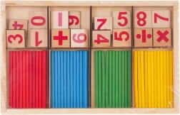 Táto drevená matematická hra je ideálnou pomôckou pre prvé krôčiky do sveta čísel. Deti skladajú správne číslice a matematické znamienka na kockách a výsledok si overujú pomocou farebných počítacích tyčiniek. Hra podporuje pochopenie základných operácií a zábavnou formou posilňuje koncentráciu a jemnú motoriku.