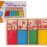 - Drevený základ s priehradkami; 24 kociek s číslami a príkladmi; 12 žltých tyčiniek; 11 zelených tyčiniek; 13 modrých tyčiniek; 13 červených tyčiniek