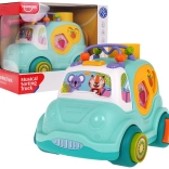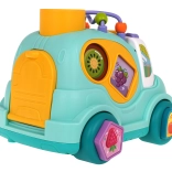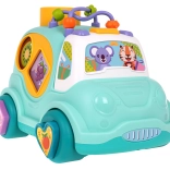 Tento farebný autobus prináša deťom hodiny zábavy a učenia v jednom. Po stranách a na kolesách nájdu deti otvory na triedenie tvarov, na streche zas vstup pre loptičky, ktoré môžu pomocou kladivka s radosťou zatĺkať dovnútra. Loptičky majú vo vnútri hrkálky, takže hra je ešte zábavnejšia a zmyslovo podnetná.