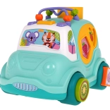 Interaktívny triediaci autobus pre deti od 18 mesiacov rozvíja jemnú motoriku, rozpoznávanie tvarov a farieb aj koordináciu oko–ruka. Ponúka svetelné a hudobné efekty, triedenie tvarov po stranách aj na kolesách, vkladanie hrkálkových loptičiek kladivkom a praktické otváracie dvierka pre ľahké vybratie dielikov.