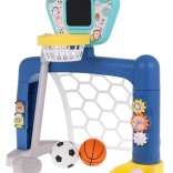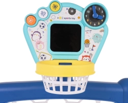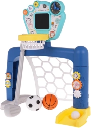 Interaktívna futbalová, basketbalová a golfová sada 3 v 1, pre deti od 18 mesiacov. Na paneli sú tri tlačidlá na prepínanie medzi režimami. Hračka je napájaná 3 batériami AA 1,5 V (nie sú súčasťou balenia). .Režimy hračky: . - Tlačidlo FUN, deti počúvajú pokyny na vykonanie úloh a potom ich nasledujú, .- Tlačidlo POHYB, spúšťa obrázky na tabuli spolu so zvukmi a hudbou, .- Tlačidlo VYPNÚŤ, batoľa ovláda výsledky na tabuli. .Funkcie hračky: . - vhodné pre deti staršie ako 18 mesiacov, .- 3 hry na výber: golf, basketbal, kopaná s loptičkou, rôzne možnosti hry, .- hodiny s pohyblivými ručičkami na učenie sa času, .- ozubené kolieska na precvičovanie presnosti, .- prekladané zošity, .- interaktívny panel so zvukovými a svetelnými efektmi. |