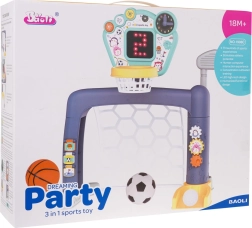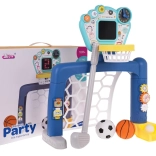 - futbalová bránka s basketbalovým košom, .- gumová basketbalová lopta .- gumová futbalová lopta .- gumová golfová loptička, .- golfová palica, .- interaktívny panel so zobrazením bodov a diód, .- používateľská príručka, .- puzdro na loptičky. . |