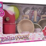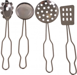 Súčasťou sú tiež kliešte, naberačka, obracačka a dierovaná lyžica – všetko, čo deti potrebujú na varenie aj servírovanie.