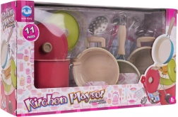 Rozvíjajte detskú fantáziu s 11-dielnou sadou kovového riadu a nástrojov pre malých kuchárov od 3 rokov. Sada obsahuje hrnce s pokrievkami, panvicu, cedidlo aj náradie a zaujme živými farbami, odolným kovovým vyhotovením a bohatou výbavou pre realistickú hru na varenie.