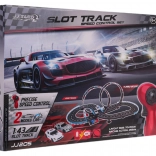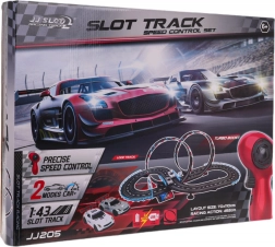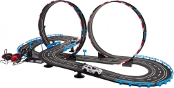 . | Jednotlivé stavebné bloky vám umožnia postaviť trať s ostrými zákrutami, špirálami a rovnými úsekmi, to všetko pre maximálnu zábavu a zvýšenie vzrušenia počas celej hry. Sada obsahuje dve vozidlá. Sada je ideálna pre deti staršie ako 6 rokov. Hračka je napájaná batériami typu 6 × AA 1,5 V (batérie nie sú súčasťou balenia). .. Funkcie súpravy . - vhodné pre deti staršie ako 6 rokov, .- vyrobené z ľahkých kvalitných materiálov, .- trať obsahuje rovné úseky, 360-stupňové slučky, zákruty, špirály, .- mierka 1:43, .- trať možno pripojiť do siete alebo napájať z batérií, .- 2 rýchlosti. ..