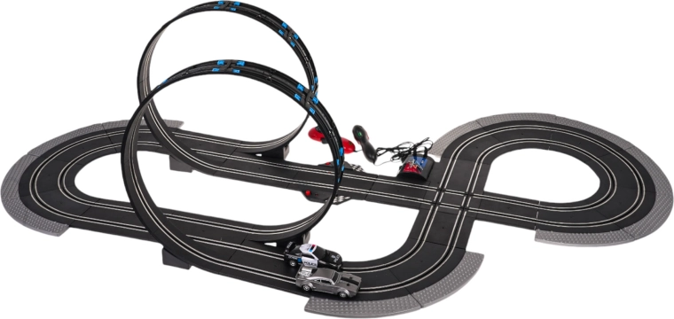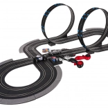 - Trať obsahuje rovné úseky, 360-stupňové slučky, zákruty a špirály