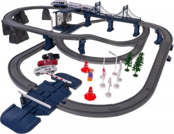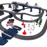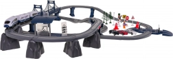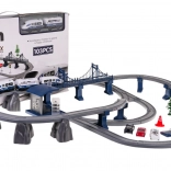 Realistická zostava koľají s mostom, zákrutami a prevýšením podporuje fantáziu aj jemnú motoriku. Deti môžu meniť konfiguráciu trate a vytvárať nové scenáre.