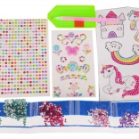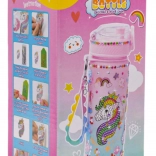 . | Samosamolepiaca fľaša na vodu pre deti od 3 rokov. Sada obsahuje fľašu na vodu, hárky s diamantmi a postavičkami jednorožcov, nálepky so šablónou, 6 vrecúšok s diamantmi, kľúčenku so šnúrkou, pero na nanášanie diamantov, zásobník a lepiaci štvorček. Fľaša sa veľmi ľahko otvára a zatvára a je vzduchotesná. Materiál fľaše je netoxický, vhodný pre deti a neobsahuje BPA. Sada podporuje kreativitu, predstavivosť a praktické zručnosti. .. Funkcie stavebnice: . - určené pre deti od 3 rokov, .- vyrobené z materiálov bezpečných pre deti a neobsahujúcich BPA, .- množstvo diamantov na zdobenie, .- šnúrka na krk je súčasťou balenia, . |