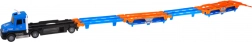 Po rozložení nákladiak vytvorí dvojúrovňovú trať dlhú až 140 cm, ideálnu na preteky s priloženými autíčkami.
