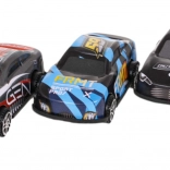V balení je šesť detailných vozidiel s kovovou karosériou a aerodynamickým dizajnom, pripravených na preteky.