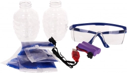 Sada obsahuje pištoľ, ochranné okuliare, dva zásobníky na gélové guľôčky, štyri balíčky guľôčok, nabíjateľnú batériu a USB kábel.