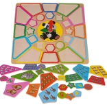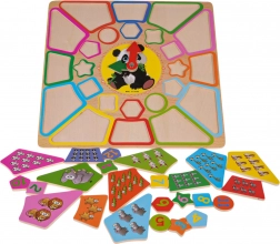 Edukatívna súprava je skvelým pomocníkom pri učení času i počítania. Obsahuje farebnú tabuľu s centrálnejmi hodinami a pohyblivými ručičkami. Deti môžu nastavovať rôzne časy a priraďovať k nim príslušné číslice i počet zvieratiek. Celá súprava je vyrobená z kvalitného dreva a natretá netoxickými farbami v živých farbách.