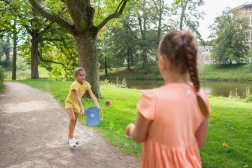 Hra pre 2 hráčov od 6 rokov. Nafúknutá loptička, vyrobená z bambusu spolu s pružnou látkou, veselo poskakuje. Tento tenisový set je ideálny aj pre malé deti, pretože tieto rakety možno držať oboma rukami. Pružné okrúhle rakety odrážajú medzi sebou loptičku ako malé trampolíny. Poslaním tejto hry je umožniť deťom zabávať sa bez smartfónov a tabletov.